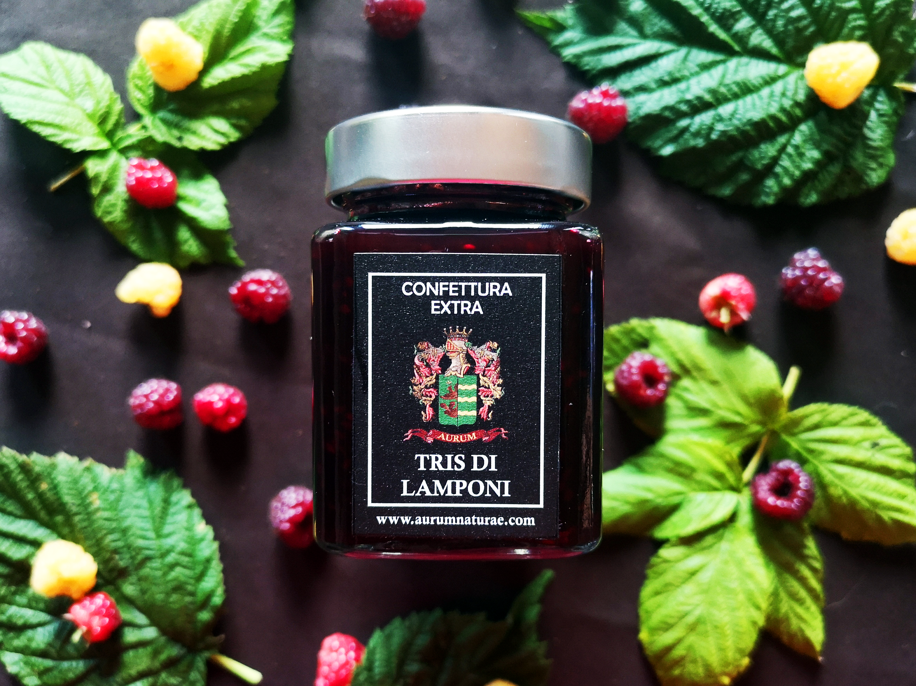 Confettura extra tris di lamponi aurumnaturae società agricola aurum val liona